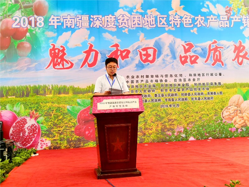 本次活動是2018年全國貧困地區(qū)農(nóng)產(chǎn)品產(chǎn)銷對接行動的第三場活動,以南疆和田地區(qū)、阿克蘇地區(qū)、克孜勒蘇柯爾克孜自治州和喀什地區(qū)等四地州農(nóng)產(chǎn)品產(chǎn)銷對接為重點,重在推動產(chǎn)銷雙方建立長期穩(wěn)定的購銷關(guān)系。